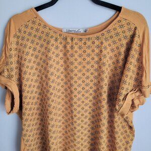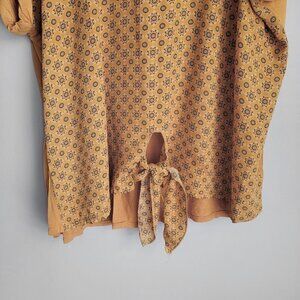 Liberty Love Orange Ethnic Abstract Print Front Hem Tie Boho Scoop Neck Boxy Top