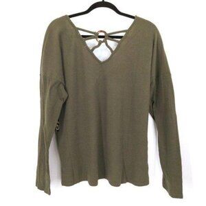 Liberty Love Ribbed Knit Shirt Womens XL Green Earthy Strappy Back Stretchy