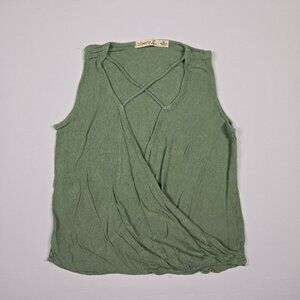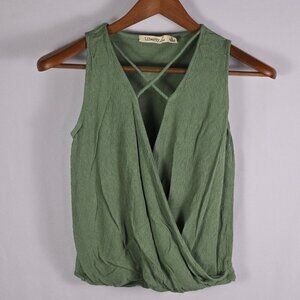 Liberty Love Womens Medium Green Rayon Sleeveless Wrap Blouse Crisscross Front
