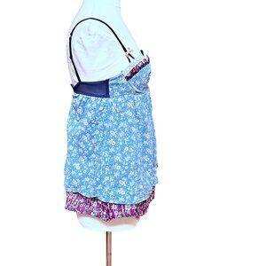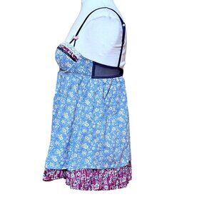 Liberty Of London Target Blue Floral Babydoll Top Ruffle Accents Boho Cottage M