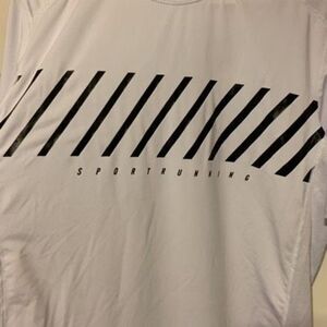 Liberty Pro Size Large White Short Sleeved Running Shirt. 88% polyester/12% spandex. 22” armpit to armpit, 29” long. A few small snags on the upper back.