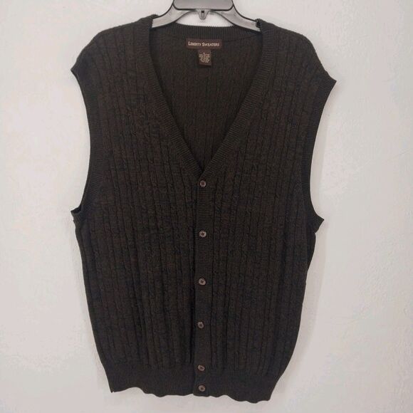 Liberty Sweaters 100% Cotton Green Brown Button Knit Sweater Vest Size XL