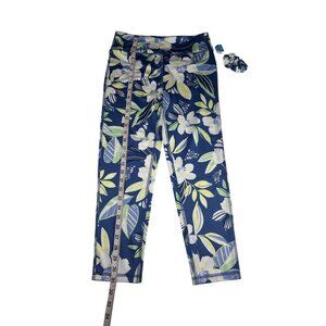 Liberty Valor Girls Floral Capri Leggings W/Scrunchie Navy/White/Green XL NEW