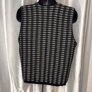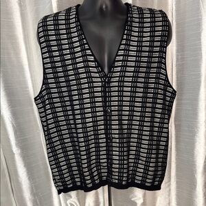 Liberty Vintage Acrylic Sweater Vest Men’s Large Black White Button Up V Neck