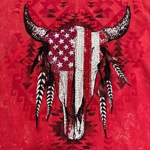 Liberty Wear Tunic Embellished Steer USA Sturgis Red Asymmetrical Women’s Size L