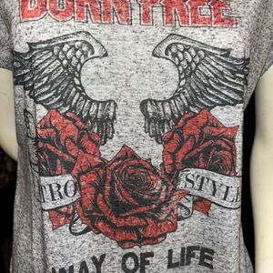 Rev up your style with this V-neck heathered grey tee featuring a unique Roses and wings graphic. Made for bikers in the USA, this tee adds a touch of rebellious flair to any outfit. Ride in style and comfort with this one-of-a-kind shirt.