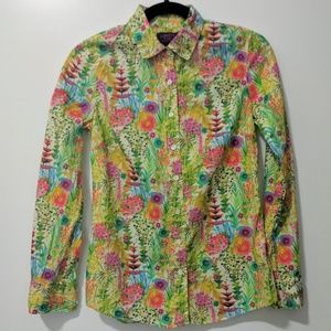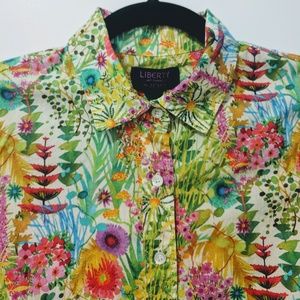 Our famous perfect shirt in a signature print from London's Liberty Art Fabrics (famous for its eye-popping florals and paisleys since 1875). This lush floral print captures the diverse tropical plant life of Tresco, a tiny family-owned island 28 miles off the coast of the UK. -Only worn once or twice. Excellent condition.