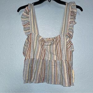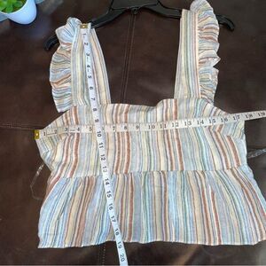 Liberty love crop top women’s size XL strips sleeveless ruffles pullover blouse