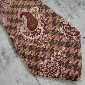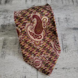 Liberty of London Burgundy Green Paisley Print Silk Tie