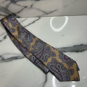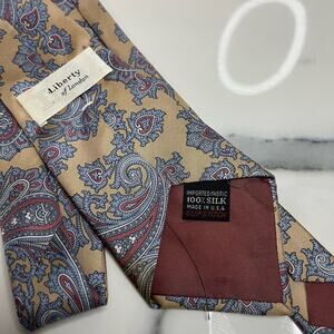 Liberty of London Men's Gold Blue Paisley Classic Length 100% Silk Tie Luxury