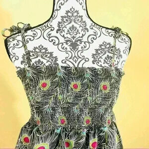 Liberty of London Tier Fit Flare “Peacock” Spaghetti Strap Sun Dress Size M