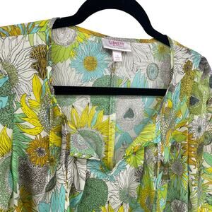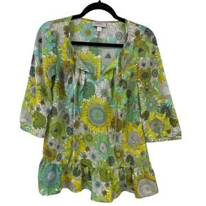 Liberty of London for Target Tie Neck 3/4 Sleeve Sunflower Print Top Womens XS