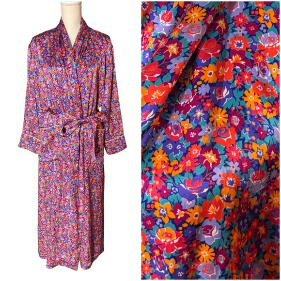 Liberty of London silk floral robe size M medium pink purple blue long pockets