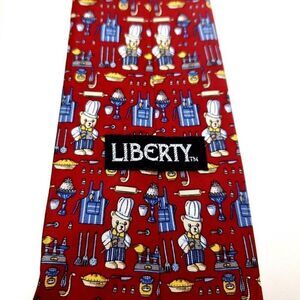 Liberty Of London Silk Tie Novelty Print Chef Bear Red