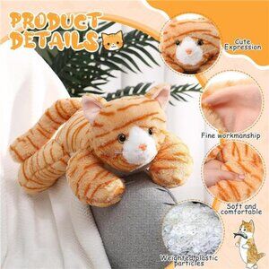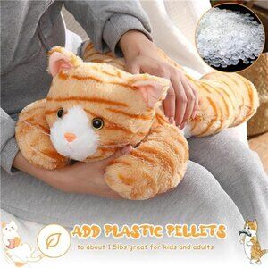 🧿Packaging Includes: you will receive 1 weighted orange striped plush cat animal, the total length of the realistic orange stuffed cat is about 16 inches/ 40cm; Experience the comfort of a hug with the soft weighted fluffy toys; Their weight is evenly distributed across throughout their body and limbs, so when you cuddle up with your kitten plushie pillow on your lap, tummy, or chest, you'll feel it hugging you back;