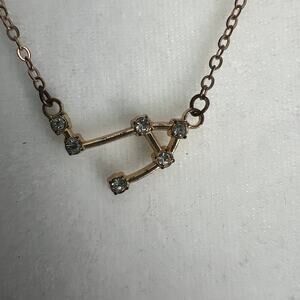 Libra Constellation Zodiac Celestial Rhinestone Studded Gold Tone Chain Necklace
