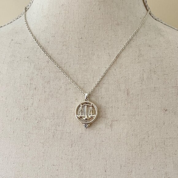 Libra Scale Zodiac Silver Tone Pendant Necklace 16" - 19"