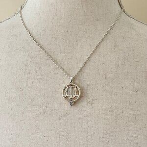 Libra Scale Zodiac Silver Tone Pendant Necklace 16" - 19" Very good pre-owned condition