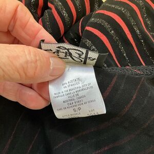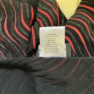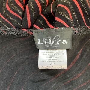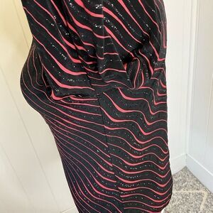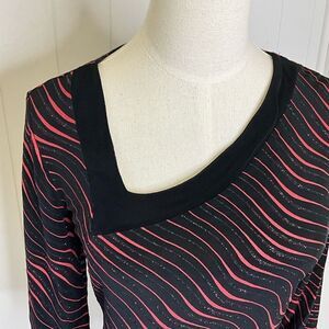 Libra Womens Small Pullover Asymmetrical Neckline Top Black Pink Wave Metallic