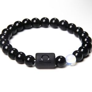 Libra bracelet, design on both sides, constellation stretch bracelet. Men or women zodiac bracelet. The scale image on the bottom right is on the other side . White stone is known for bringing prosperity and personal power. 7.5”
