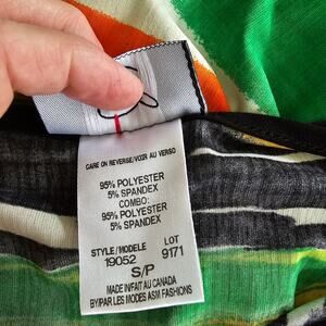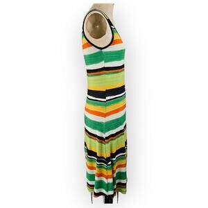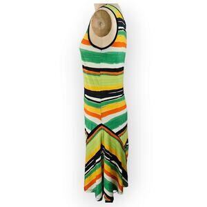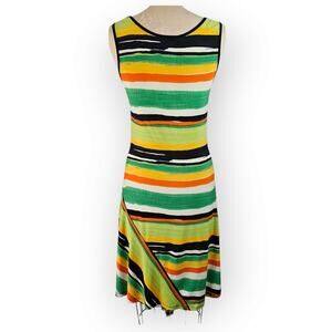 Libra scoop neck abstract bright green orange stripe sleeveless dress Smalll