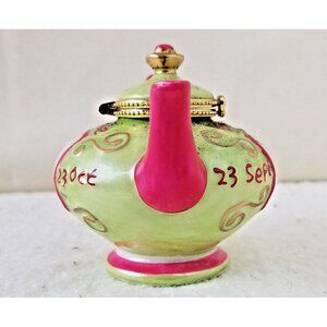 Libra tea pot Trinket jewelry Box "sept 23 - oct 23" balance pink green gold