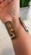 Cuff bracelet made out of an old license plate and you can make out the numbers 64