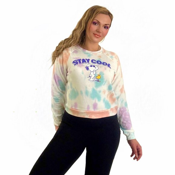 Licensed PEANUTS Snoopy 'STAY COOL" women's Tie Dye crop FLEECE Sweatshirt S,M,L