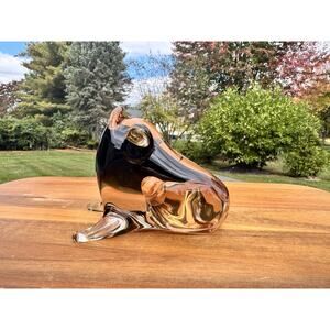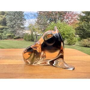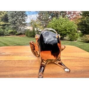 This vintage Murano glass frog sculpture, attributed to Licio Zanetti, showcases the exceptional quality and craftsmanship for which Murano glass is renowned. The elegant amber hues and sculptural form make it a standout display piece for collectors and admirers of fine Italian glass art.