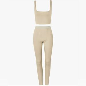 This is a brand new Licobod Woman Yellow Ribbed Crop Tank Top & High Waisted Leggings Set Activewear in a Size Medium. The outfit is all stretchy material. See images for measurements and material tags. I only have the set in Yellow, the stock photos are just meant to show how the outfit looks worn.