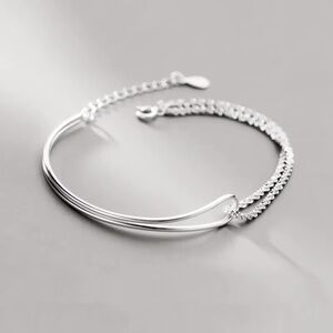 Licol Bracelet Italy .925 Silver Mixed Tubular + Chain Style Adjustable