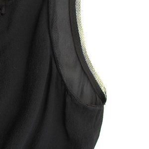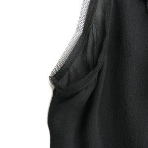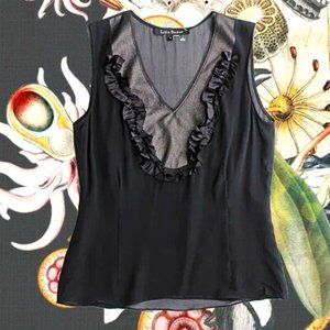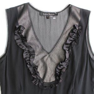 Lida Baday Black Silk Top Ruffle Metallic detail Sheer Back V-neck Sleeveless