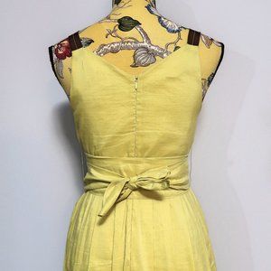 Lida Baday Yellow Belted Pleated Midi Dress 2