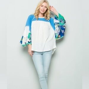 Lida Kate Bohemian Color Block Bell Sleeve Top