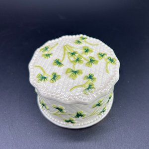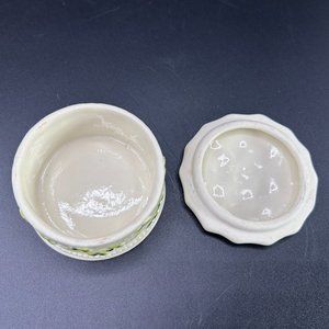 Lidded Ceramic Trinket Holder Box Storage Container White Green Floral