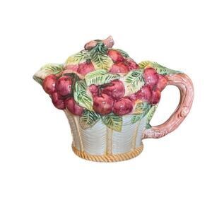 Lidded Teapot World Bazaars Inc 32 ounce Red Fruit Cherries in Basket . No chips or cracks EUC 3ad effect