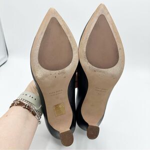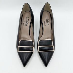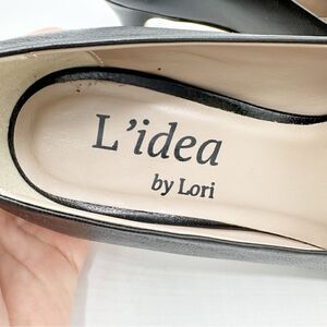 L’idea by Lori Black Pointed Pumps Taupe Trimmed Leather Rectangle Embellishment