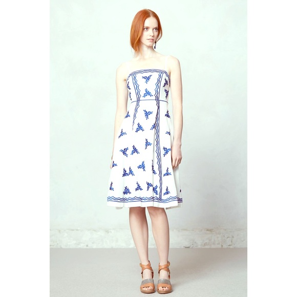 Official Description: Drawing inspiration from French lace, antique ribbon and vintage lingerie, the sister-designed line Moulinette Soeurs creates exquisitely tailored pieces with intricate seams and meticulous attention to detail. This fit-and-flare frock is perfect for a spring soirée and, should the temps dip, look smashing with a cropped cardi. (Seller Description: Brand new and never been worn)