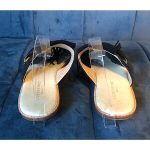 Liebeskind Berlin Anthropologie Sandals- Black leather & suede fringe, slide sandals, cushioned footbed.