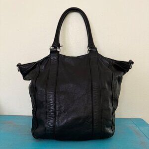 Liebeskind Berlin Black Leather Silver Accents Tote Shoulder Handbag