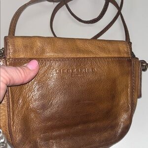 This mini cross body leather bag by Liebeskind Berlin, removable strap that has a 25” inch drop. Perfect for cell phone, small items. Smoke and pet free home. Measurements are included with pictures. Preowned bag with sign of use and wear, adds character to this classic never goes out of style accessory.