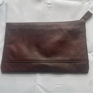 Liebeskind Luxury 100% Cow Leather Zip FLAT Pouch Wallet Clutch Brown