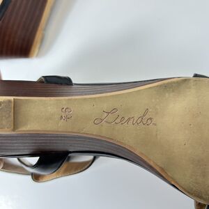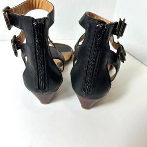 Liendo Anthropologie Black Leather Buckle Ankle Strap Low Wedge Sandals Size 9.5