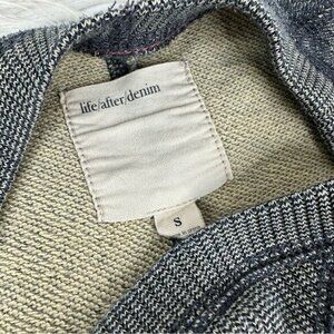 life/after/denim men's size small sweatshirt, it is a heather blue, crew neckline, long sleeves, ribbed trim, oversized and stretchy. Materials 88% cotton, 12% polyester. Care machine wash tumble dry low. Condition is preloved very good as shown in pictures. Please preview the measurements to ensure fit.