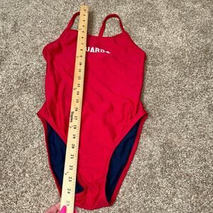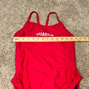 Life Guard swimsuit one piece red GUARD open round back SZ LG red/white slightly snagged bottom