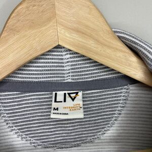 Life Integrity Earth Gray Striped Pullover Size Medium. Button collar. 100% Cotton.