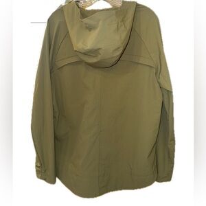 Hooded Rain Jacket Green Nylon 1/4 Zip Hooded Rain / Wind Stretchy Hiking / Trail / Camping / Fishing / Outdoors Excellent condition!