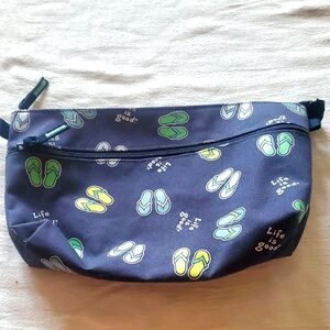 Life Is GOOD 12" × 7" Navy Flip Flop Print Pouch NWOT
