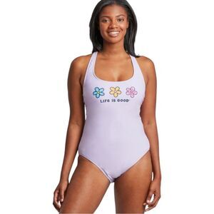 Life Is Good 3 Daisies Tie Back One Piece Swimsuit - Size Small