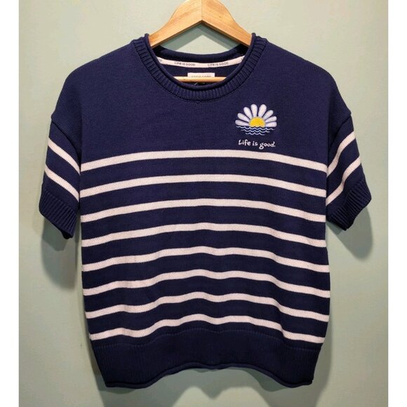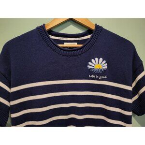 Life Is Good Blue White Stripe Short Sleeve Sweater